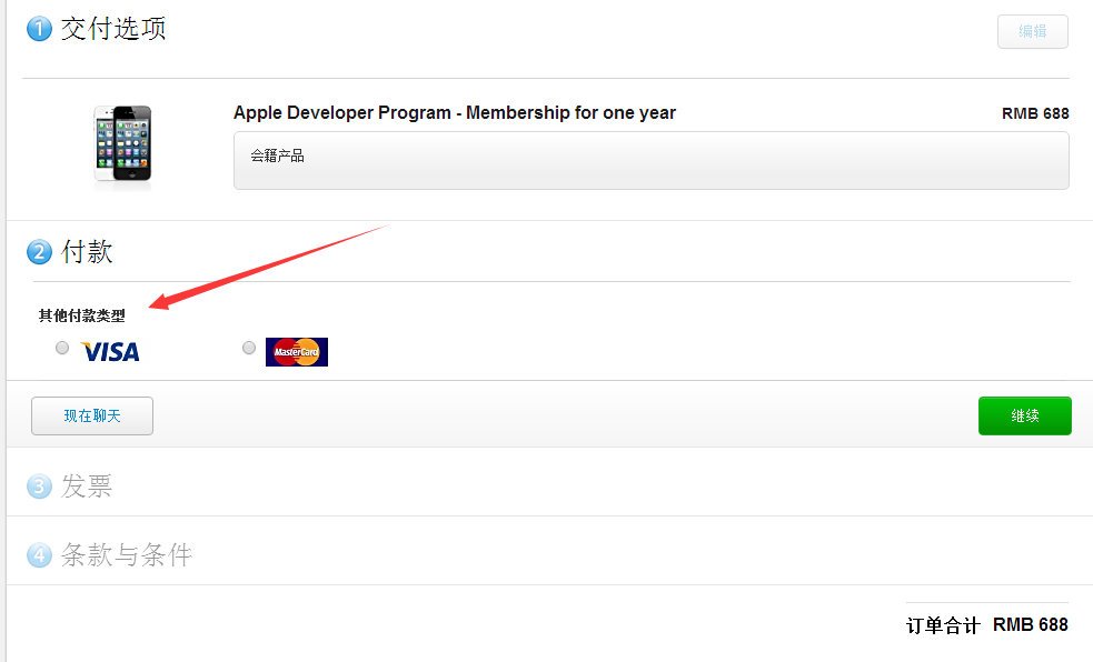 注 :填写完资料后2-3天,苹果官方会打微信给企业法人去核实资料 ,当信息核实后,苹果那边审核资料通过了,则到了填写支付的信用卡资料的流程.