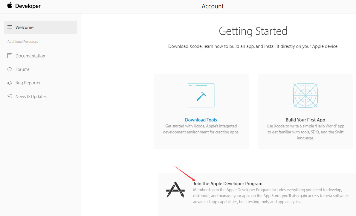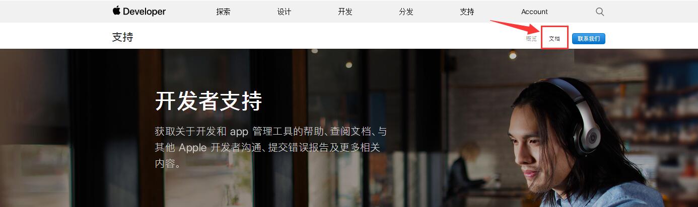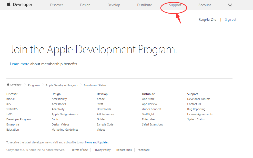 (2) 点击【Sign IN】按钮并登录IOS开发者平台,接下来点击【Support】按钮 :