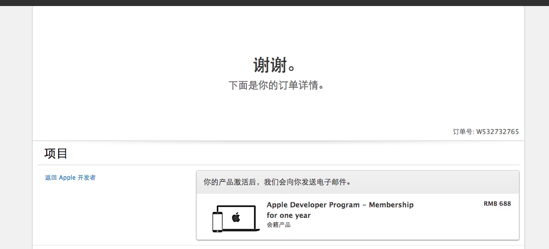 5、账号审核通过后,苹果会给申请账号APPID的邮箱发一封电子邮件,找到邮件进入支付,或者登录IOS开发账号,点击【Continue】按钮,进入付款界面