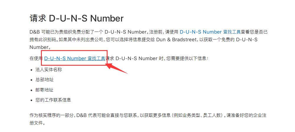 4. 邓白氏编码申请下来之后,3-5天左右邓白氏编码才会生效,然后才能继续申请IOS企业开发者账号: