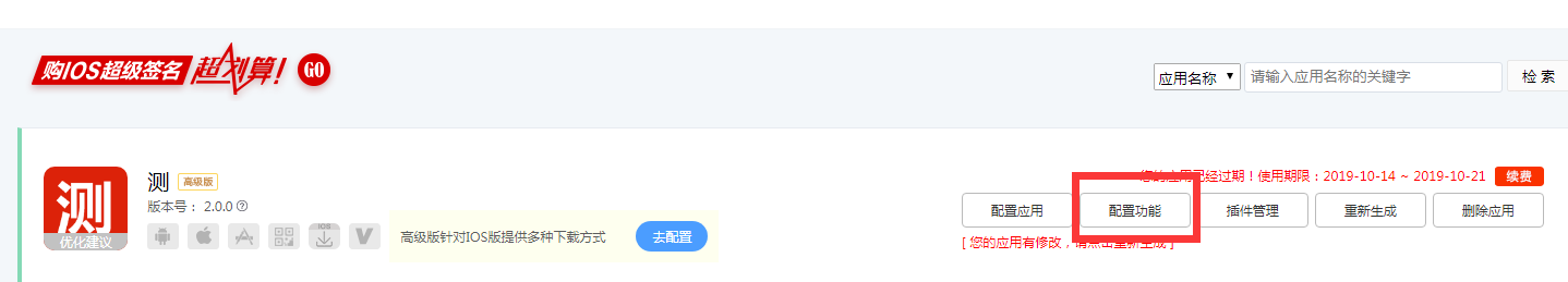 登录云打包后台进入管理应用